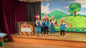 幼児クラスの劇では、セリフに詰まる場面もありましたが、周りの友達がそっと教えてあげてみんなで協力する姿に成長を感じまた。最後までやり遂げたことで、達成感や満足感を味わうことのできた遊戯会となりました。