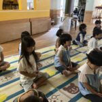 畑に到着し、ご挨拶をしてさつま芋の苗の植え方を教えて頂きました。苗を斜めにして植えるとサツマイモがたくさんできることを知り、苗をやさしく持ち、斜めに植えことをを意識しながら苗植えを行いました。