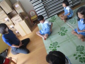 リモートで理事長先生と他の園のお友だちにもご挨拶をします。