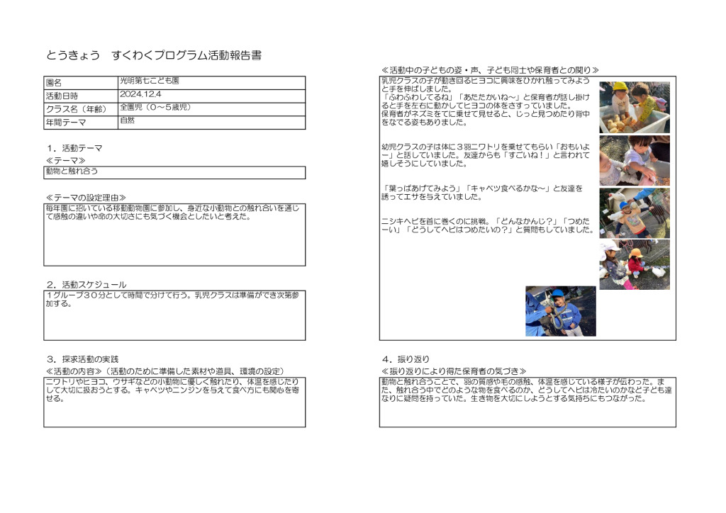 とうきょう すくわくプログラム活動報告書12月4日