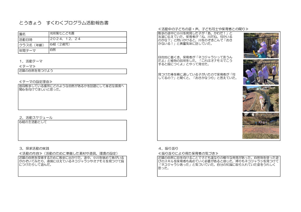 とうきょう すくわくプログラム活動報告書12月24日