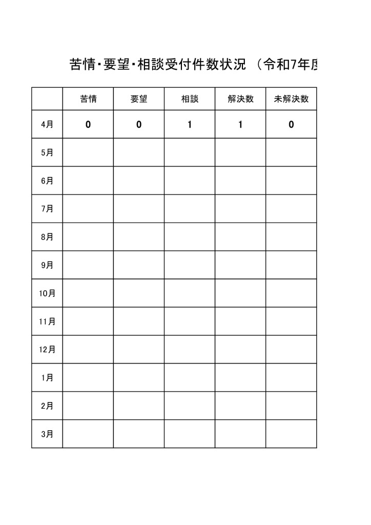 令和7年度 苦情・要望・相談受付状況4月