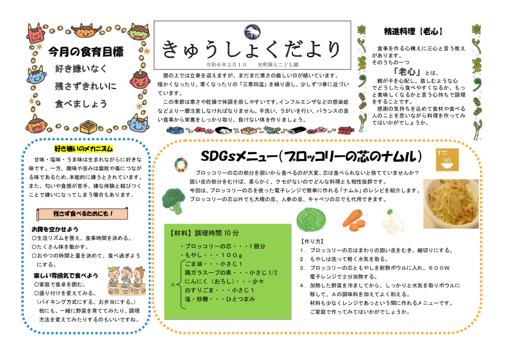 きゅうしょくだより R6.3月